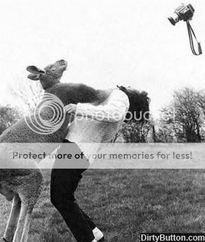 If a wild herd of roo's see fit to trample him, or give him a nice jab,... in an unfortunate photo op.... ::)