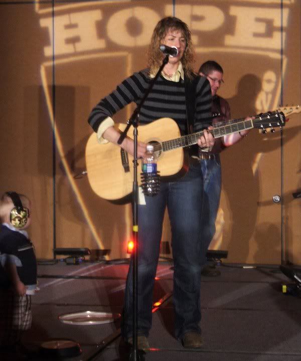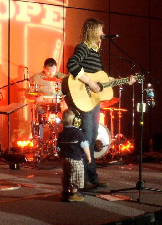 Why is Jackson talking to mommy on stage? Because that's daddy over mommy's shoulder