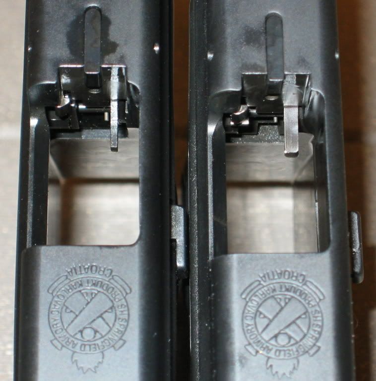 Look at the standard ejector on the left in this picture - note how far away from the side of the slide it is.