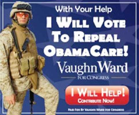 The Marine Corps wrote Ward earlier this month saying his online ad on the Drudge Report website on March 31 and April 1 violated the directive. The ad showed Ward in camouflage and body armor and said, "With Your Help I Will Vote To Repeal ObamaCare!"