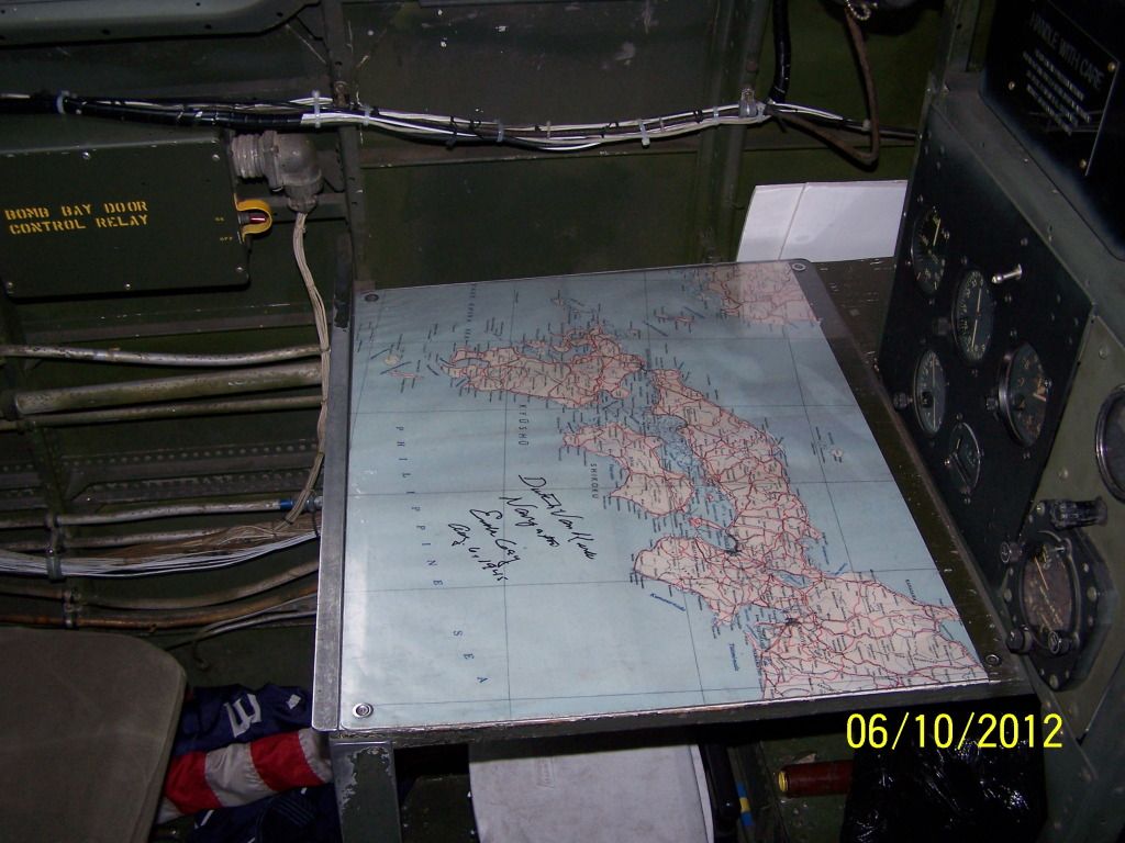 Got to sit in the navigator seat.  Dutch Van Kirk signed off on the map at the navigator's station during a ride at Oshkosh this past year.  Smooth flight.