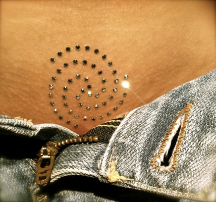 Don't worry ladies. You don't put rhinestones right on your labia. They're glued to the pubic area;